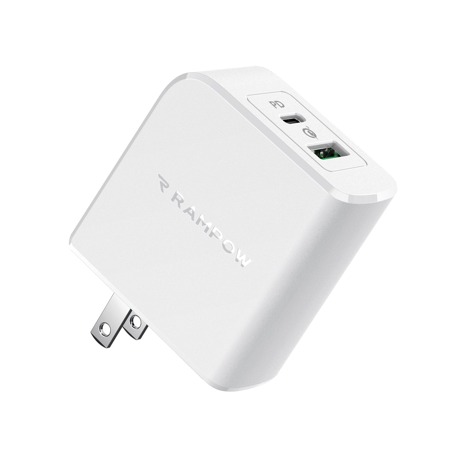 RAMPOW 36W Type C + USB A Dual Port Fast PD Wall Charger with 30W Power Delivery 3.0 - White, US Plug