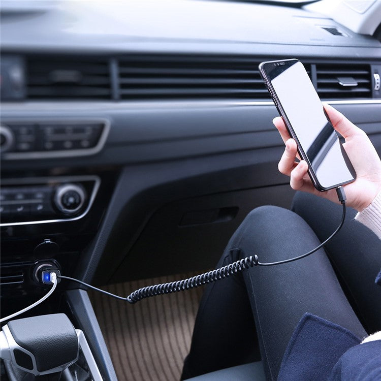 RAXFLY 5V 2.1A Car Charger with Lightning USB Spring Cable Cigarette Lighter Cable for iPhone/iPad/iPod