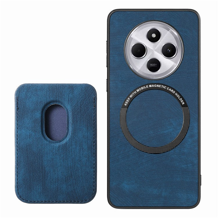 Retro Phone Case For Xiaomi Redmi 14C 4G / 14R 5G / Poco C75 4G Leather+TPU Back Cover with Detachable Card Slot - Blue