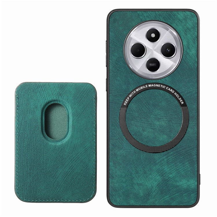 Retro Phone Case For Xiaomi Redmi 14C 4G / 14R 5G / Poco C75 4G Leather+TPU Back Cover with Detachable Card Slot - Green