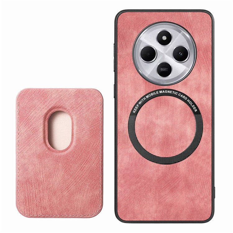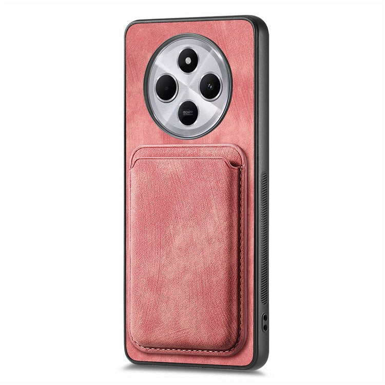 Retro Phone Case For Xiaomi Redmi 14C 4G / 14R 5G / Poco C75 4G Leather+TPU Back Cover with Detachable Card Slot - Pink