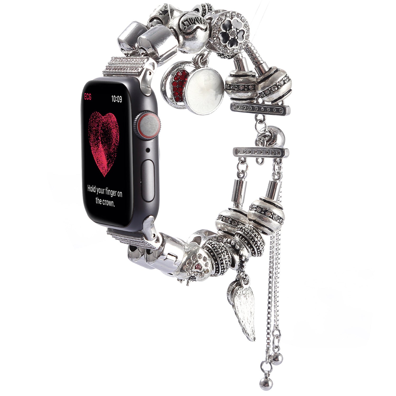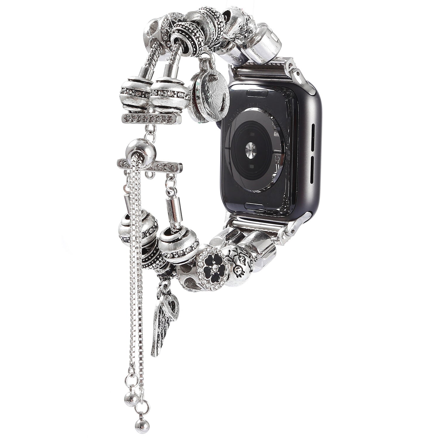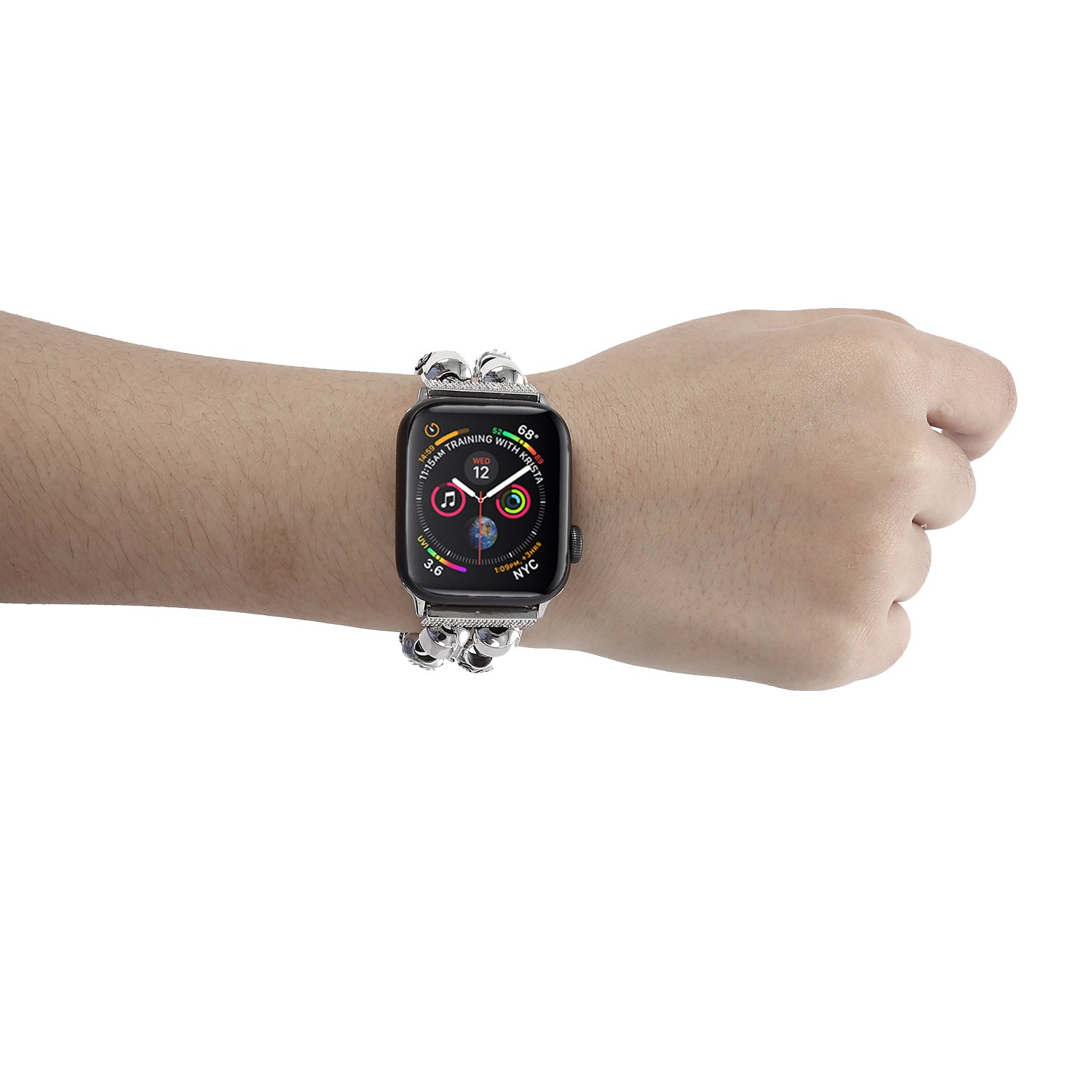 Retro Style Metal / Wooden Beads Smart Watch Band Replacement Watch Strap Bracelet for Apple Watch Series 8 41mm / Series 7 41mm / 6 / 5 / 4 / SE / SE(2022) 40mm / 3 / 2 / 1 38mm - Silver