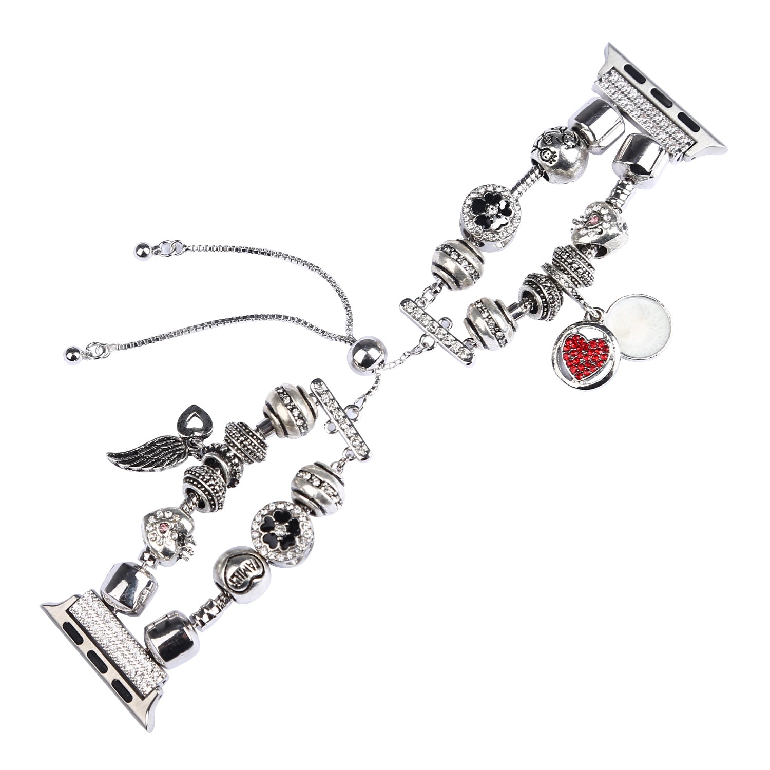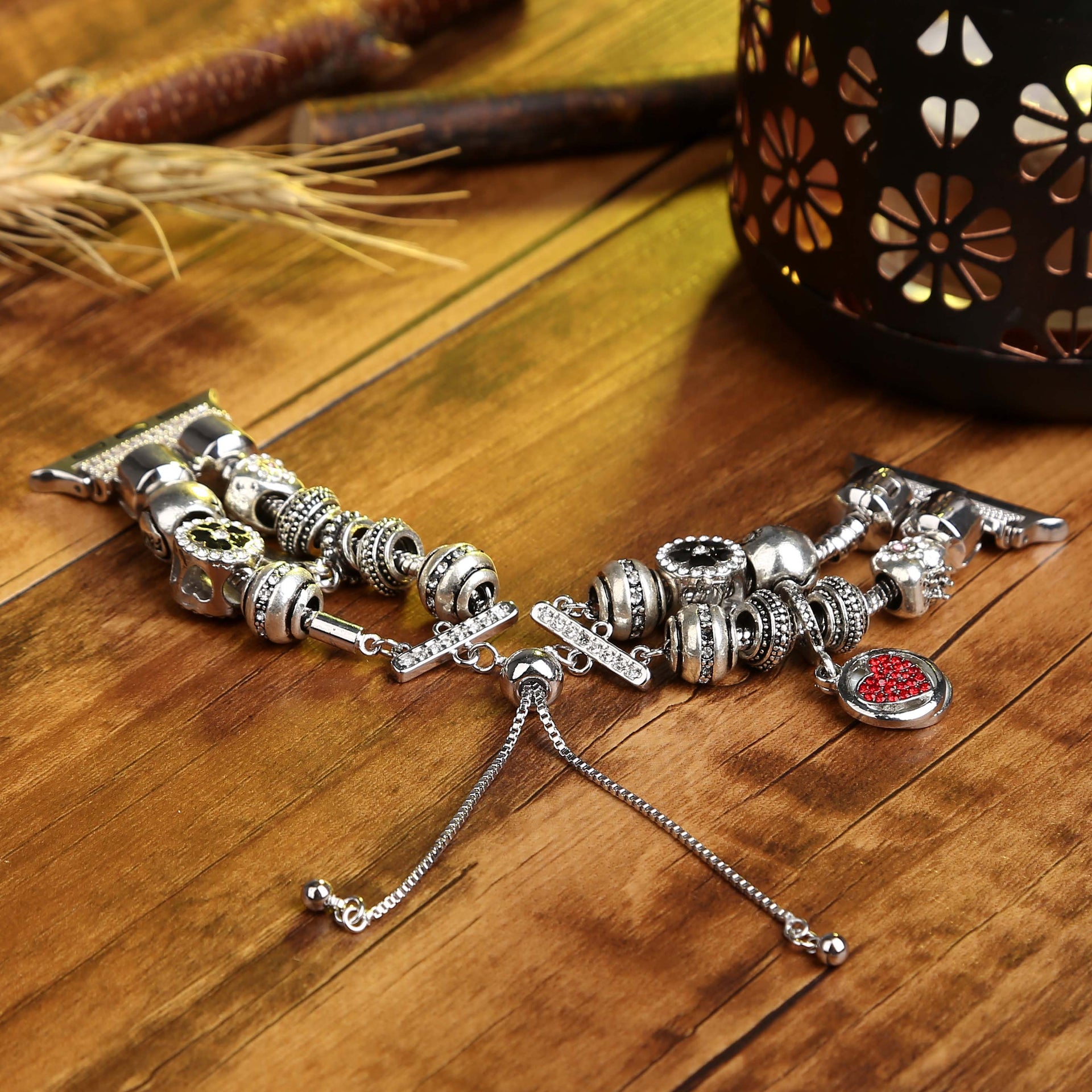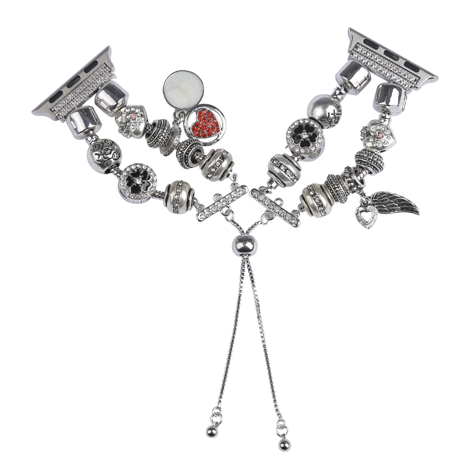 Retro Style Metal / Wooden Beads Smart Watch Band Replacement Watch Strap Bracelet for Apple Watch Series 8 41mm / Series 7 41mm / 6 / 5 / 4 / SE / SE(2022) 40mm / 3 / 2 / 1 38mm - Silver