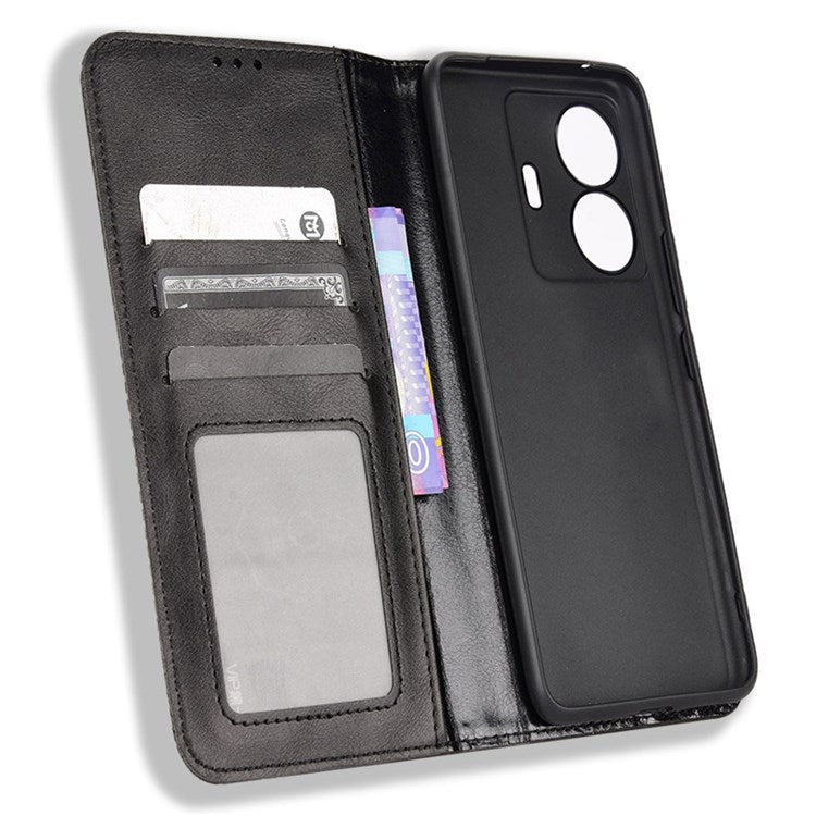 Retro Surface Anti-Fall Case for vivo S15e 5G Wallet Phone Case Leather Mobile Phone Protector with Stand - Black