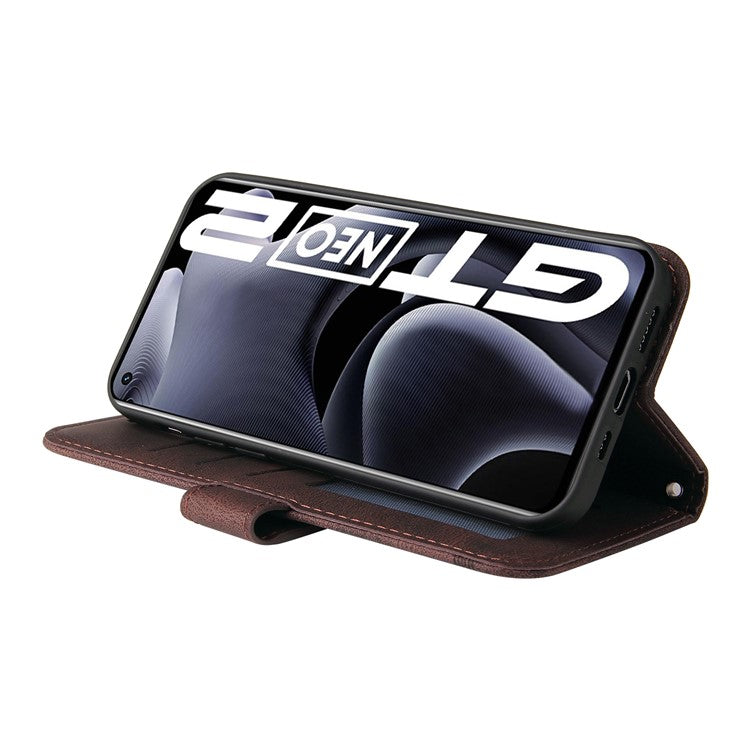 Retro Tree Pattern Metal Button Decor Stand Wallet PU Leather Phone Case Cover for Realme GT Neo2 5G/GT Neo 3T 5G - Brown