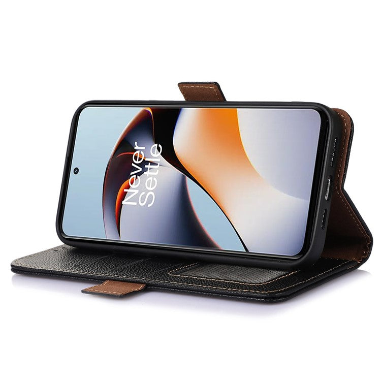 RFID Blocking Phone Case for OnePlus Nord 3 5G / Ace 2V , Genuine Cow Leather Stand Wallet Cover - Black