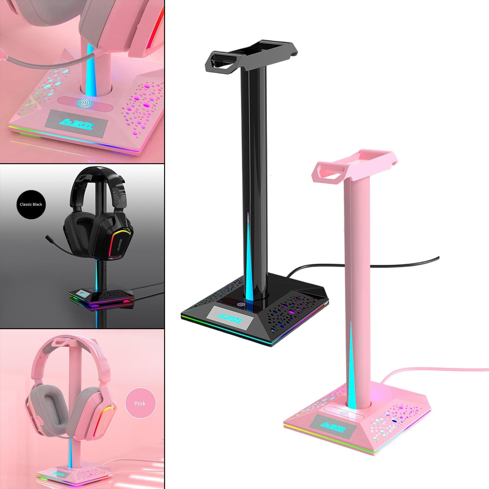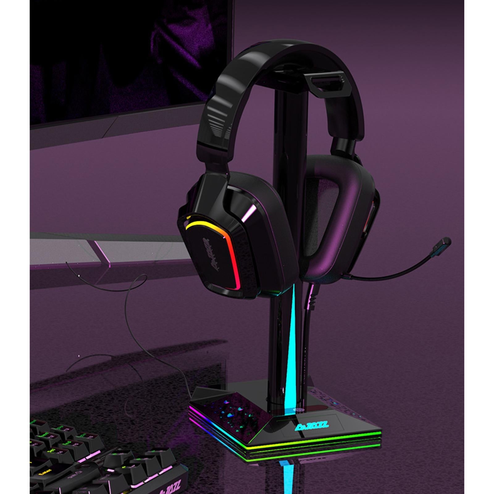 RGB Headphone Stand 2 USB Ports 3.5mm AUX Bse for PC Gaming Headset Black