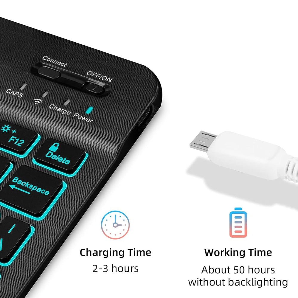 RGB-X710D Bluetooth Keyboard Mouse Set for Samsung Galaxy Tab S9 FE / S9 / S8 / S7 Leather Tablet Case + RGB Backlit Keyboard + Mouse - Midnight Green