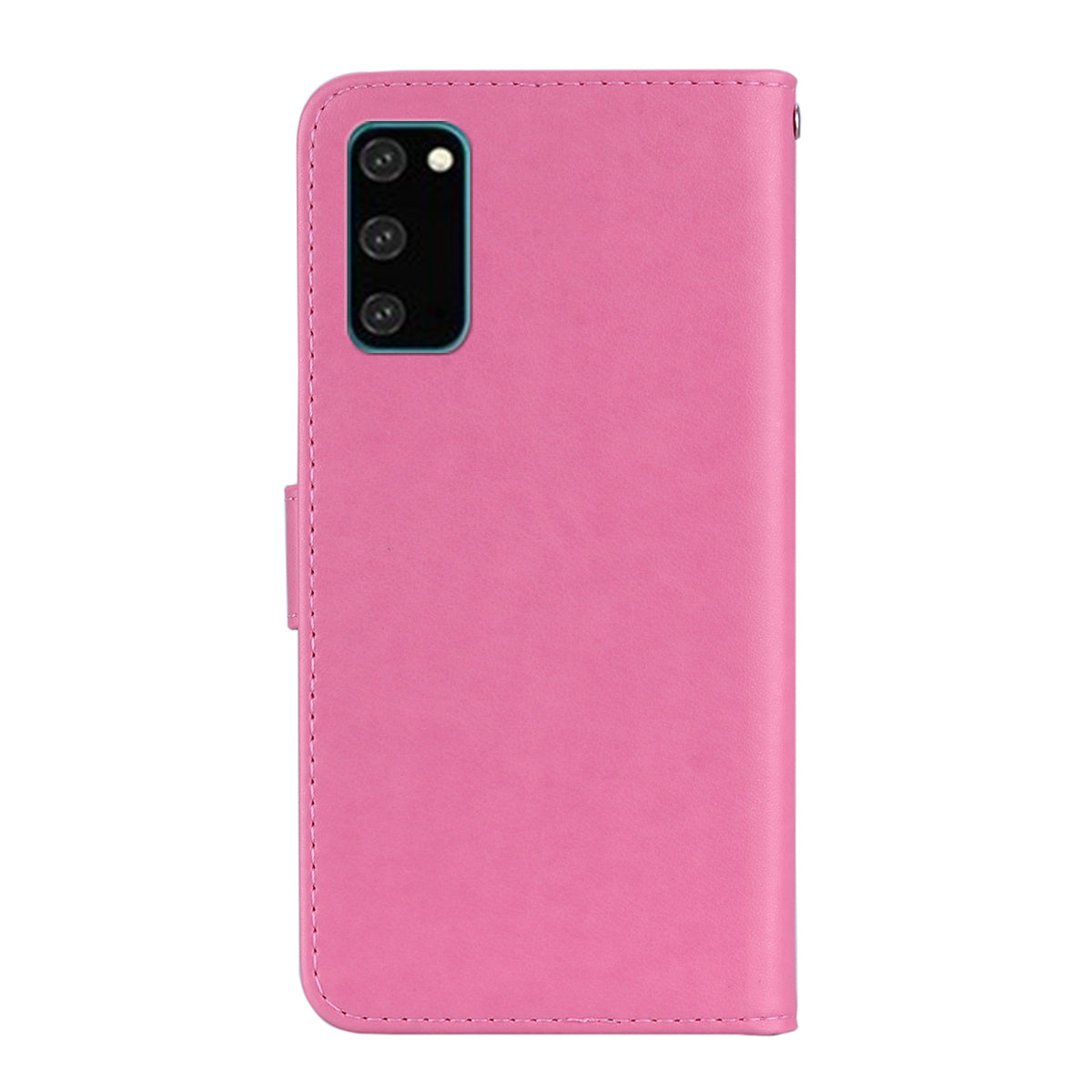 Rhinestone Decoration Imprint Owl Leather Shell Wallet Stand Phone Cover for Samsung Galaxy S20 4G/S20 5G - Pink