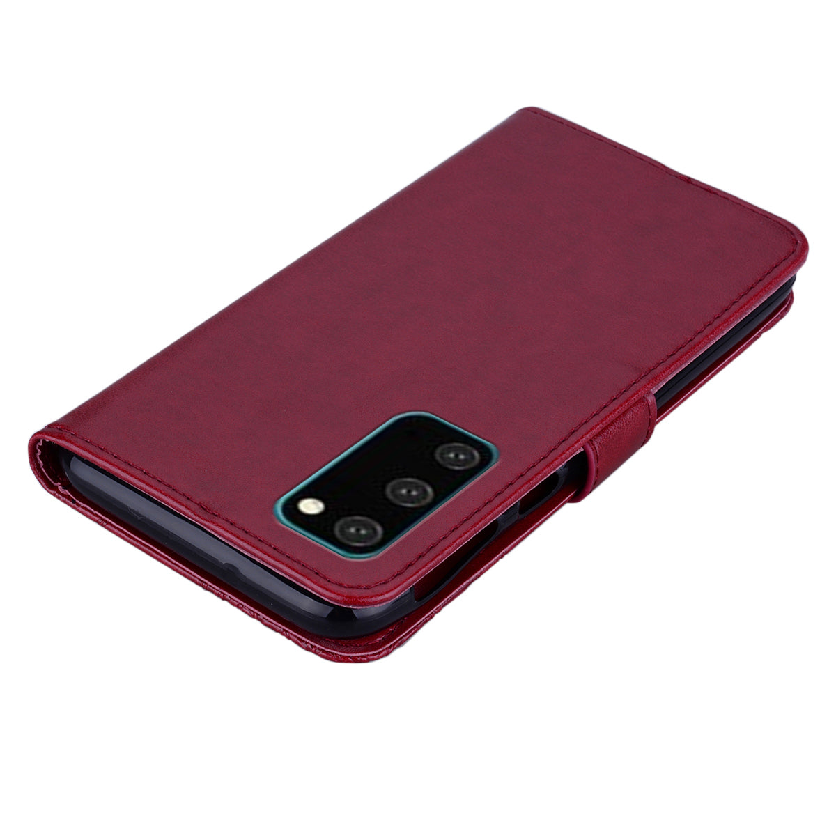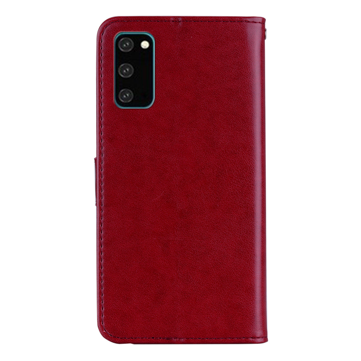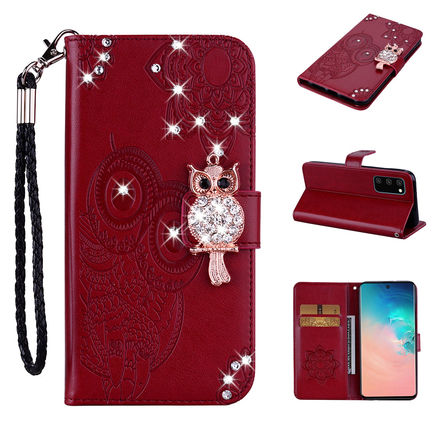 Rhinestone Decoration Imprint Owl Leather Shell Wallet Stand Phone Cover for Samsung Galaxy S20 4G/S20 5G - Red