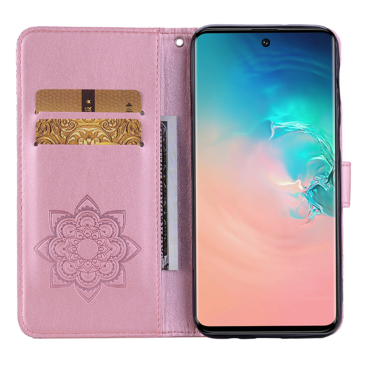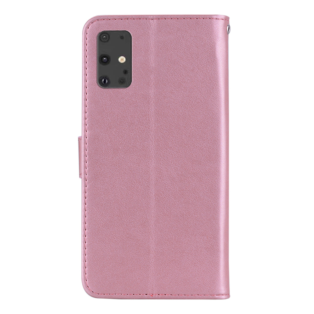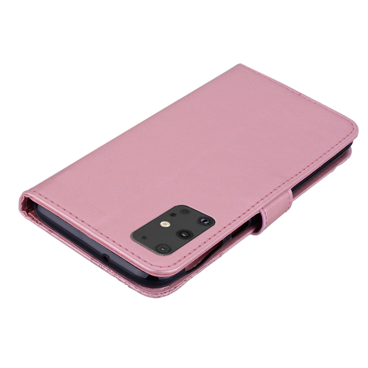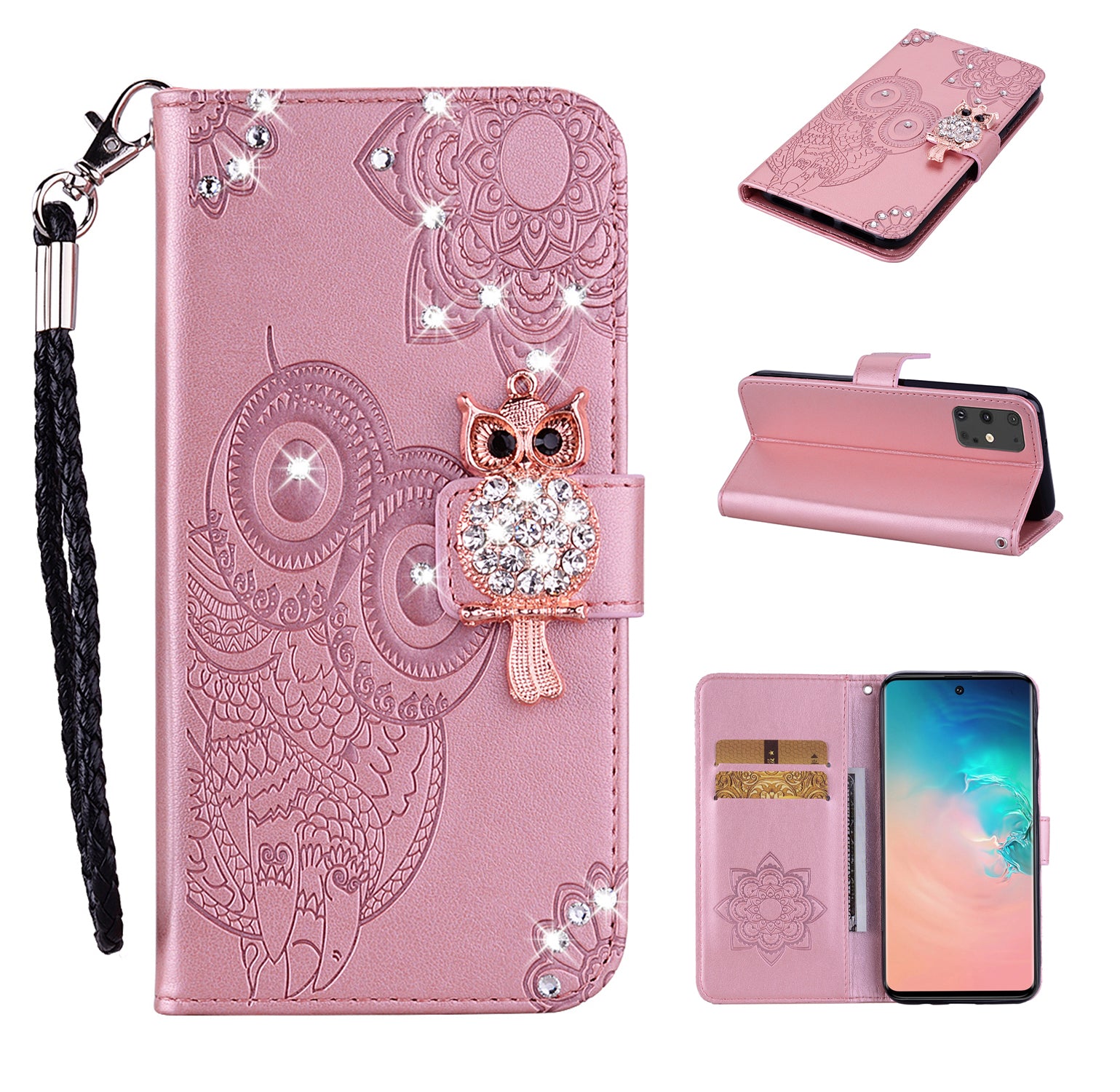 Rhinestone Decoration Imprint Owl Leather Wallet Stand Phone Cover Shell for Samsung Galaxy S20 Ultra - Rose Gold