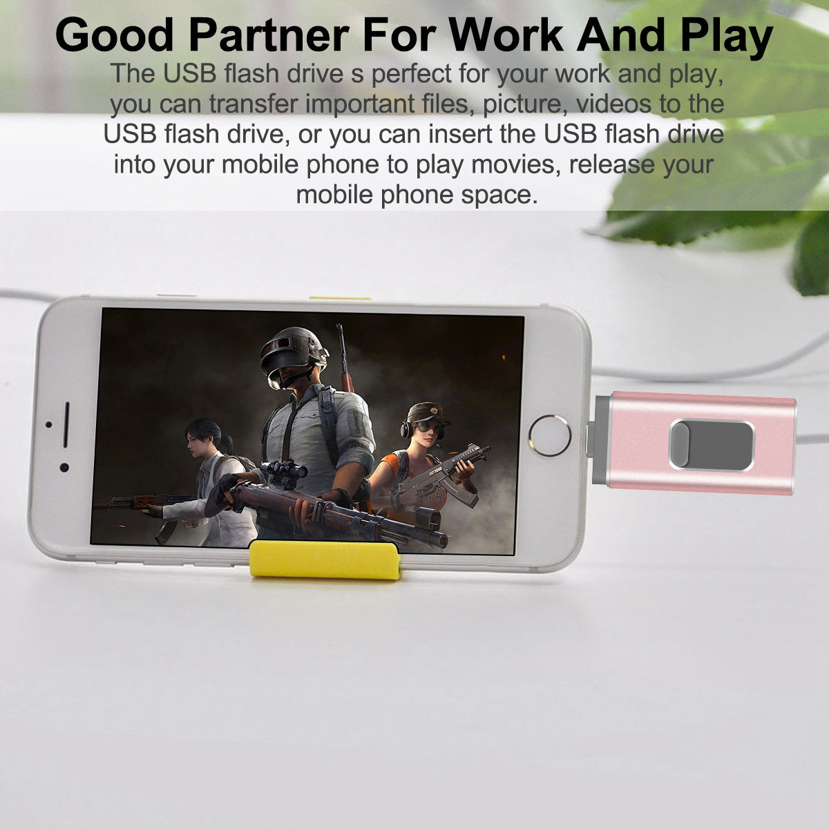RICHWELL R-01B 8GB High Speed USB 3.0 Flash Drive 3 in 1 Photo Stick for iPhone Android PC Memory Stick - Pink