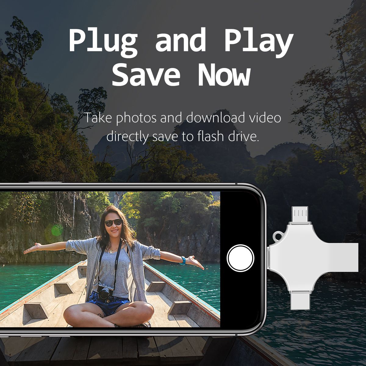 - Equipped with 4 interfaces: USB 3.0, Type C, lightning and micro USB, and is compatible with all smart devices, such as cell phones, laptops, computers, etc