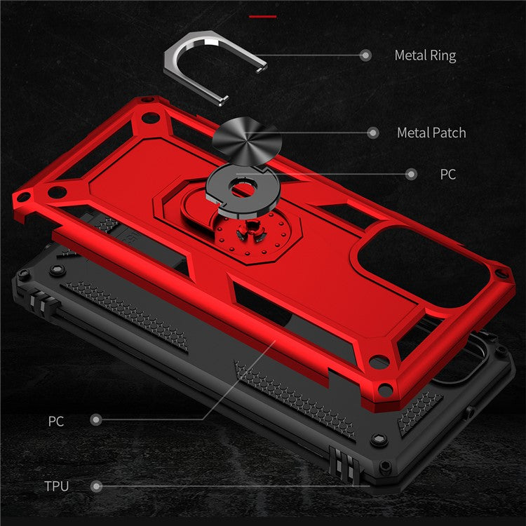 Ring Holder Kickstand Scratch-resistant Anti-drop Phone Cover PC + TPU Hybrid Case with Built-in Metal Sheet for Samsung Galaxy M52 5G - Red