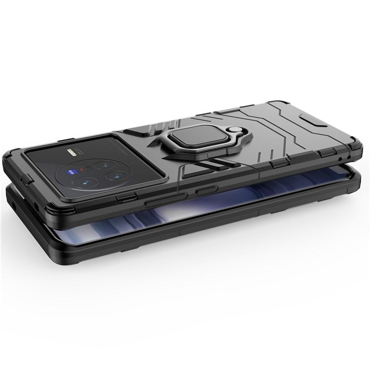 Ring Kickstand Phone Cover for vivo X80 5G, Hard PC Soft TPU Shockproof Smartphone Cover - Black