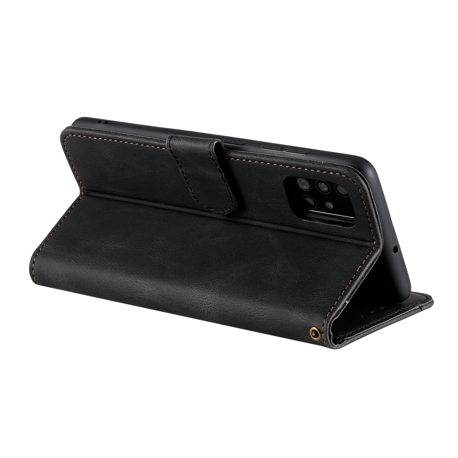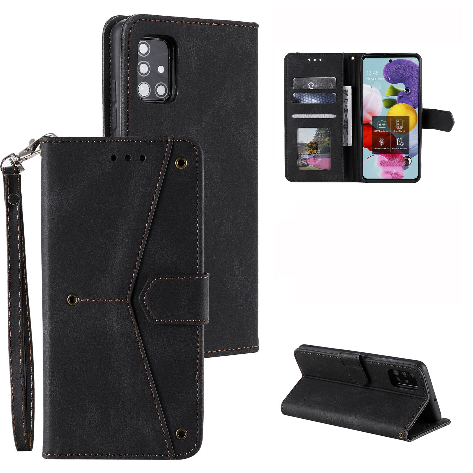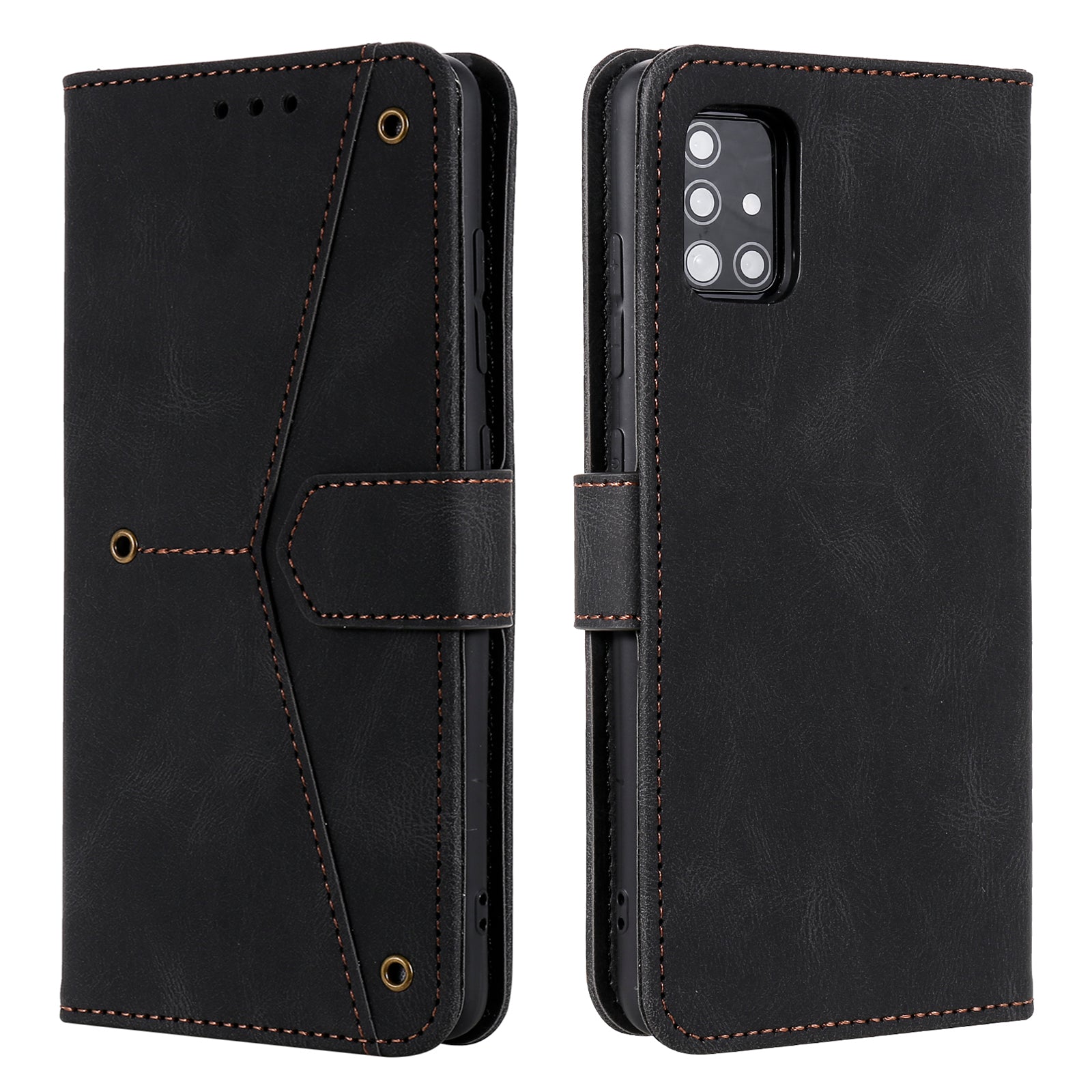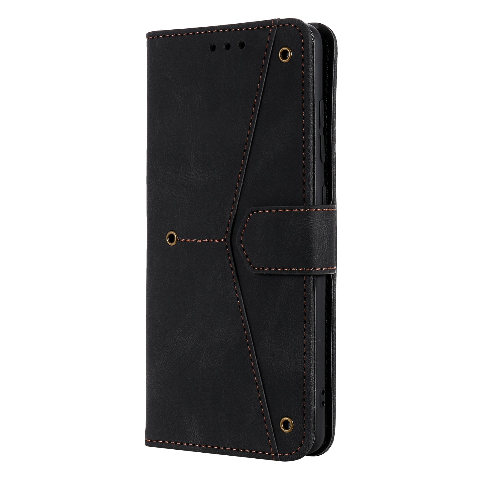 Rivet Decor Skin-Feeling Splicing Leather Wallet Phone Protective Cover for Samsung Galaxy S20 FE 4G/5G/2022/S20 Lite - Black