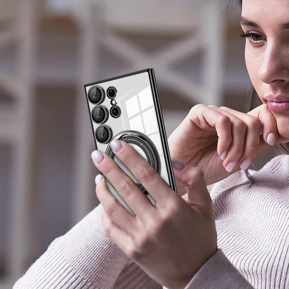 Rotating Kickstand Case for Samsung Galaxy S22 Ultra 5G PC+TPU Phone Cover Compatible with MagSafe - Black