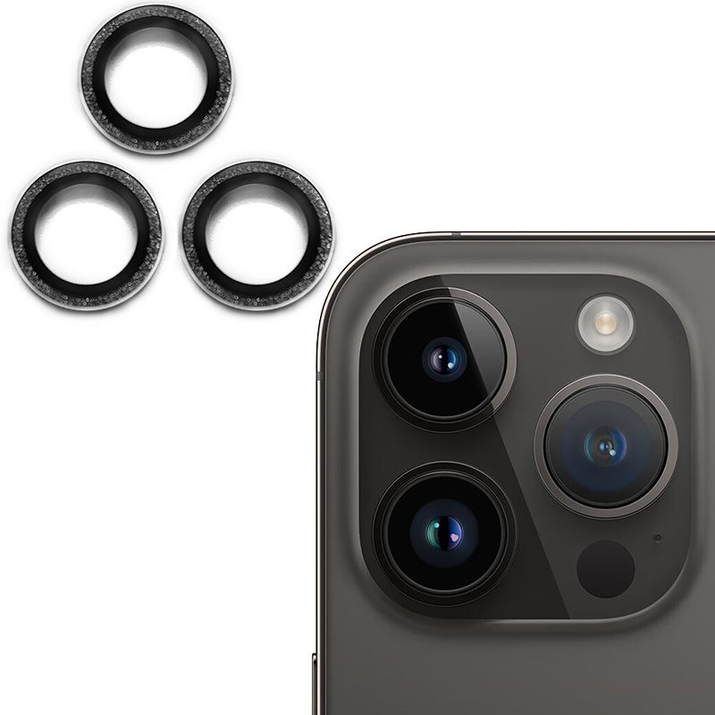 Uniqkart For iPhone 15 Pro / 15 Pro Max Camera Lens Protector AR HD Tempered Glass Glitter Ring Lens Film - Black
