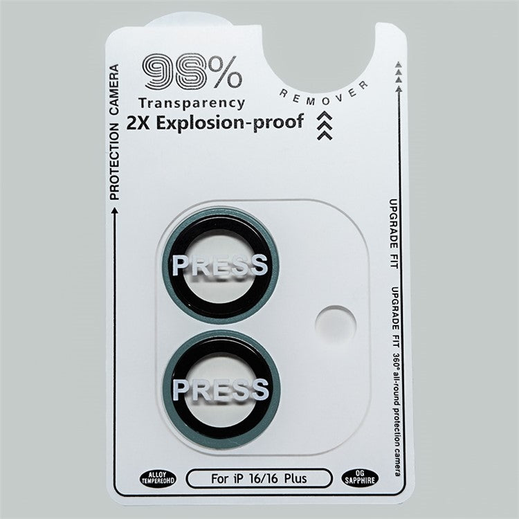 RURIHAI For iPhone 16 / 16 Plus Camera Lens Film Titanium Alloy Ring+Tempered Glass Lens Protector - Green