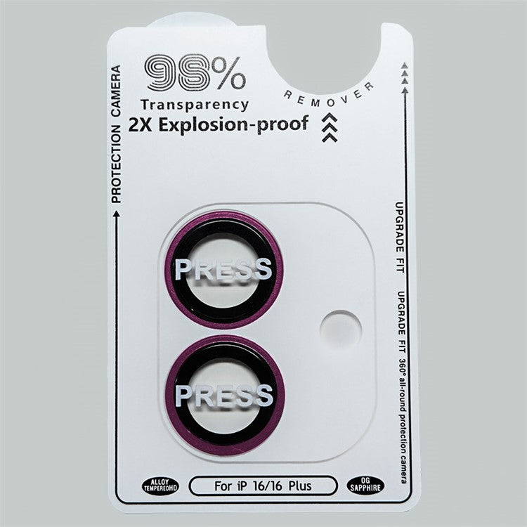 RURIHAI For iPhone 16 / 16 Plus Camera Lens Film Titanium Alloy Ring+Tempered Glass Lens Protector - Pink