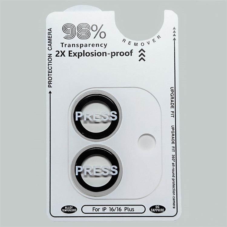 RURIHAI For iPhone 16 / 16 Plus Camera Lens Film Titanium Alloy Ring+Tempered Glass Lens Protector - Silver