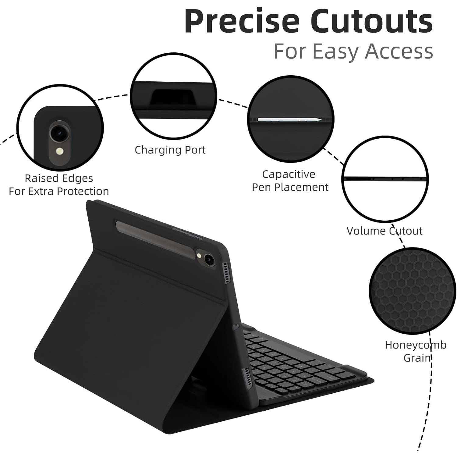 SD-X710 For Samsung Galaxy Tab S7 / S8 / S9 / S9 FE 11 inch PU Tablet Case Backlit Bluetooth Keyboard - Black