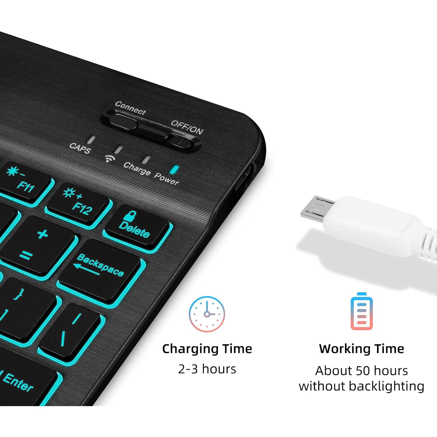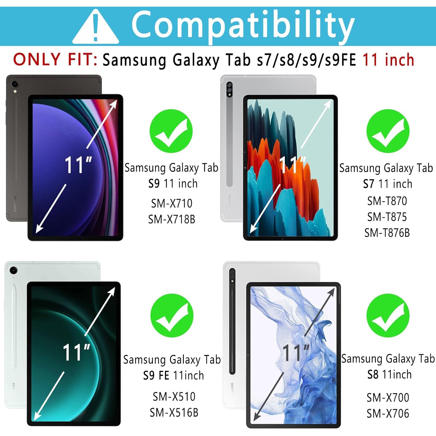 SD-X710 For Samsung Galaxy Tab S7 / S8 / S9 / S9 FE 11 inch PU Tablet Case Backlit Bluetooth Keyboard - Dark Green