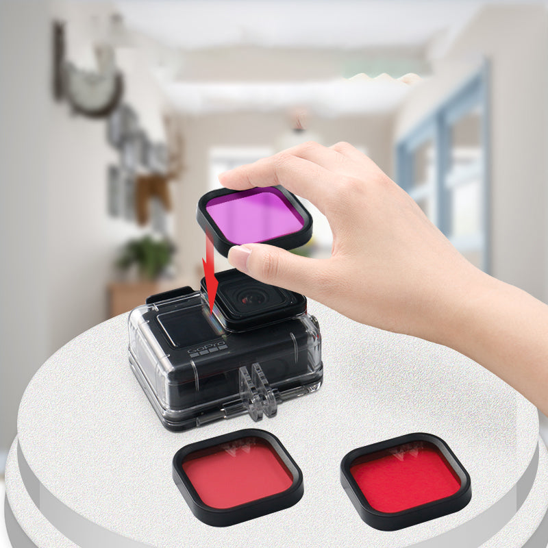 - Red lens filter, can restore the greenish color, suitable for shooting in sea water