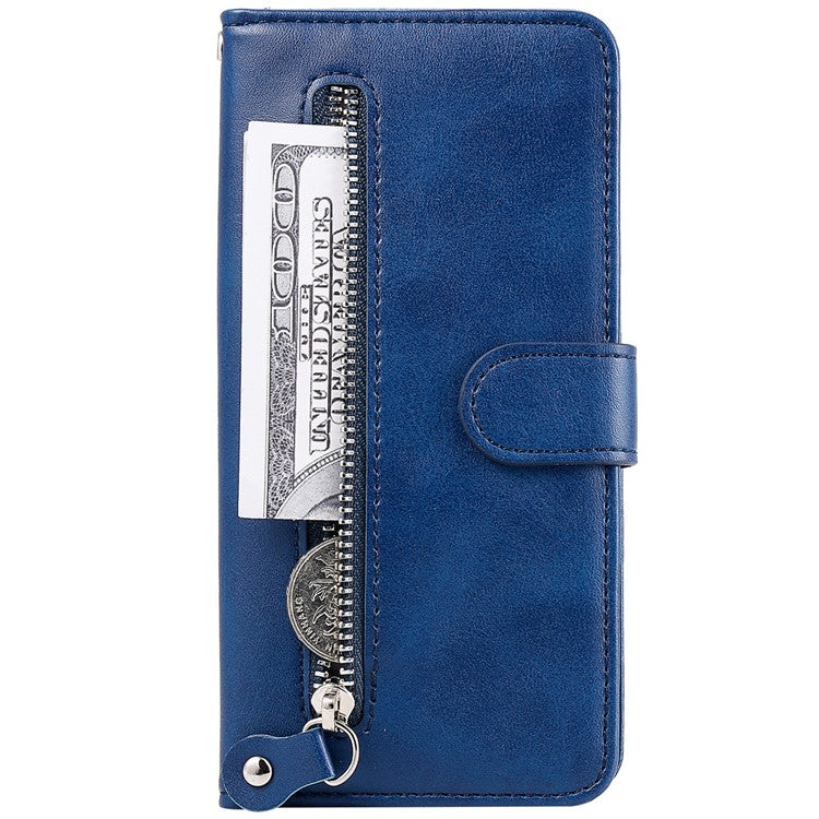 Shockproof Anti-scratch Phone Covering PU Leather Zippered Pocket Phone Case Coin Wallet Stand Folding Case for Realme C21Y/C21/C25Y - Blue