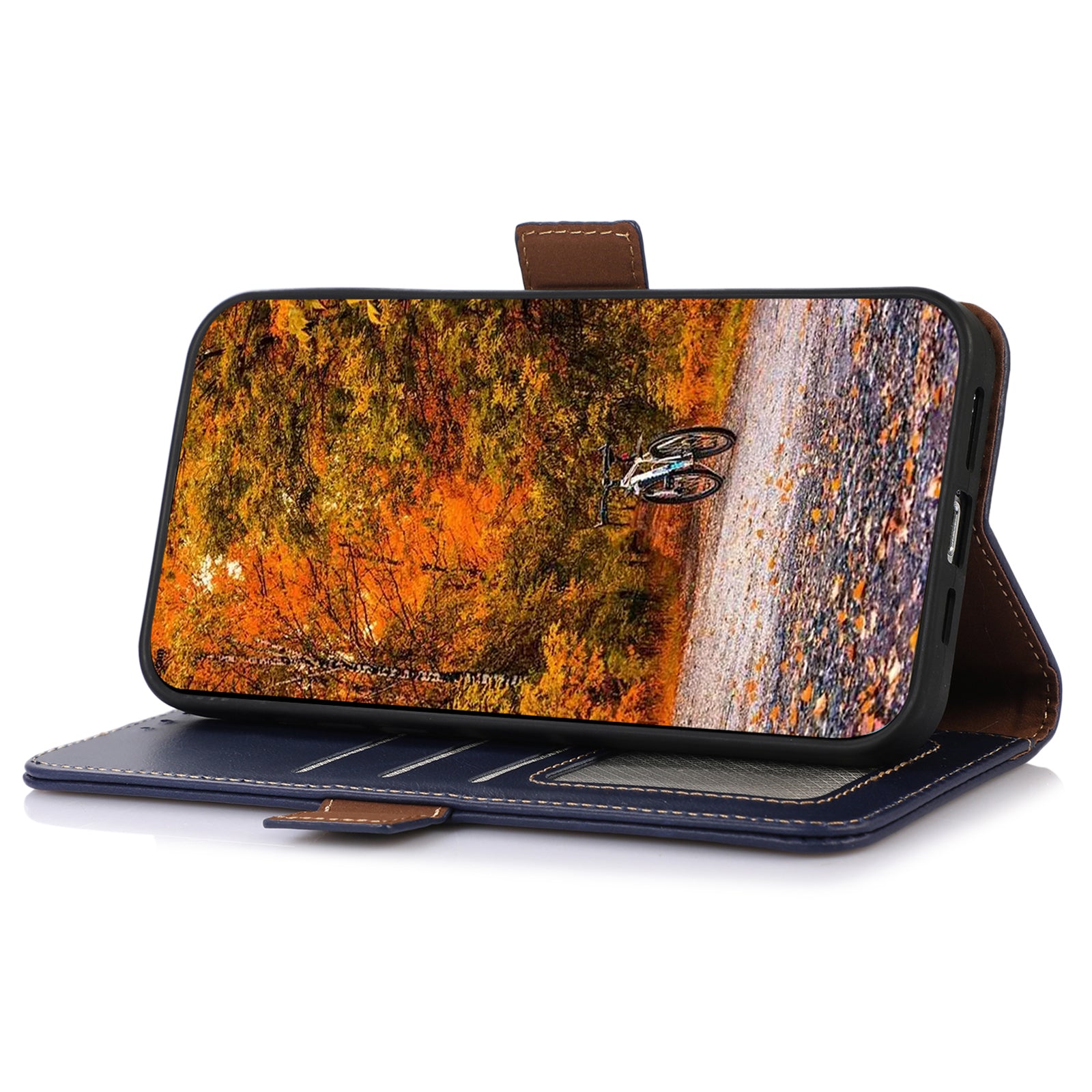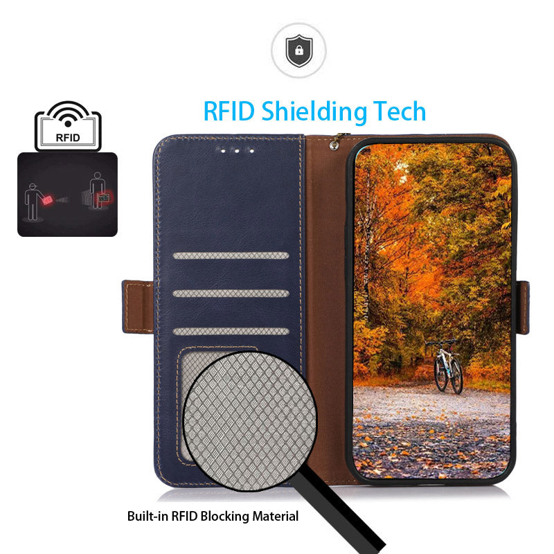 Shockproof Phone Case For OnePlus 11 5G, RFID Blocking Genuine Cowhide Leather Anti-scratch Phone Cover with Wallet Stand - Blue