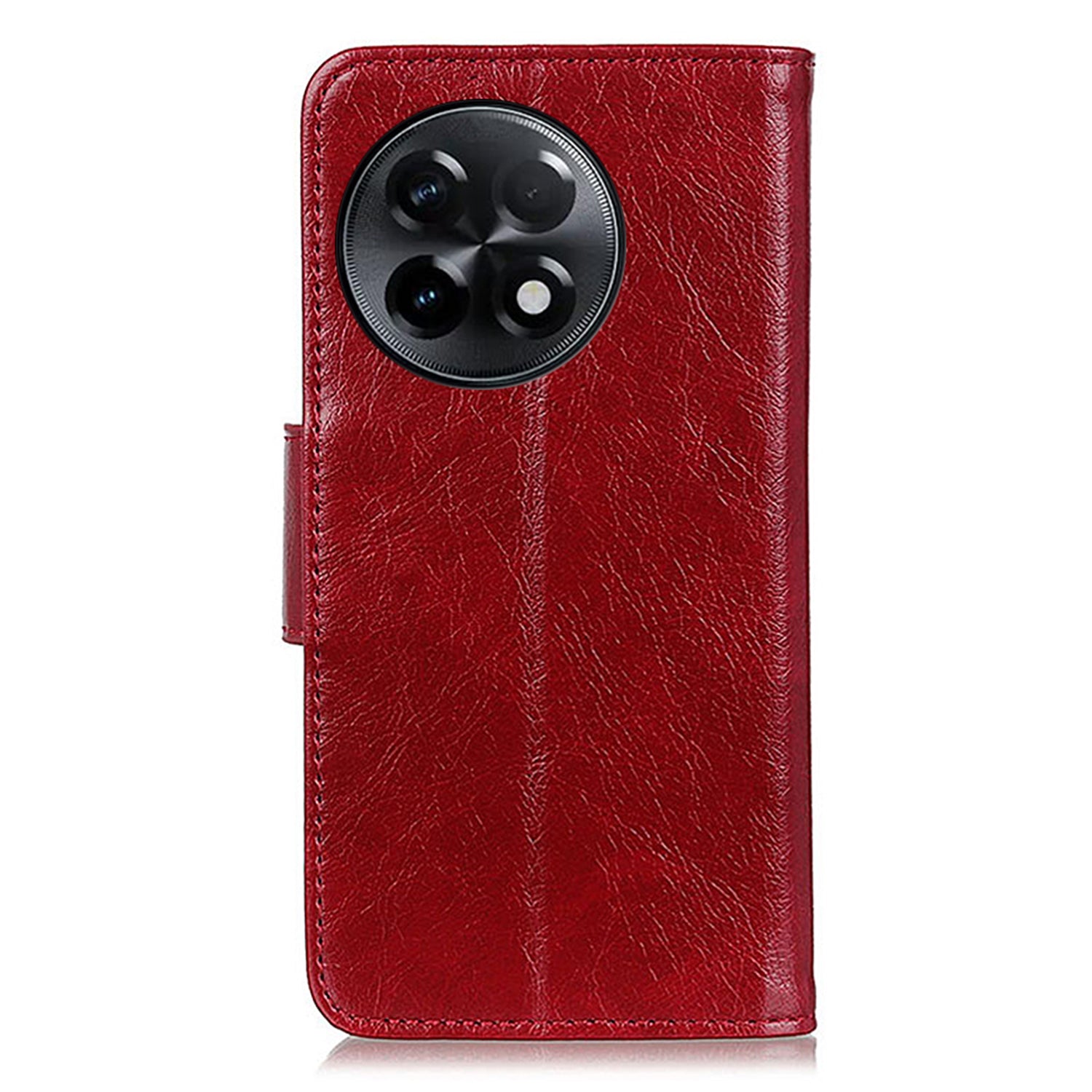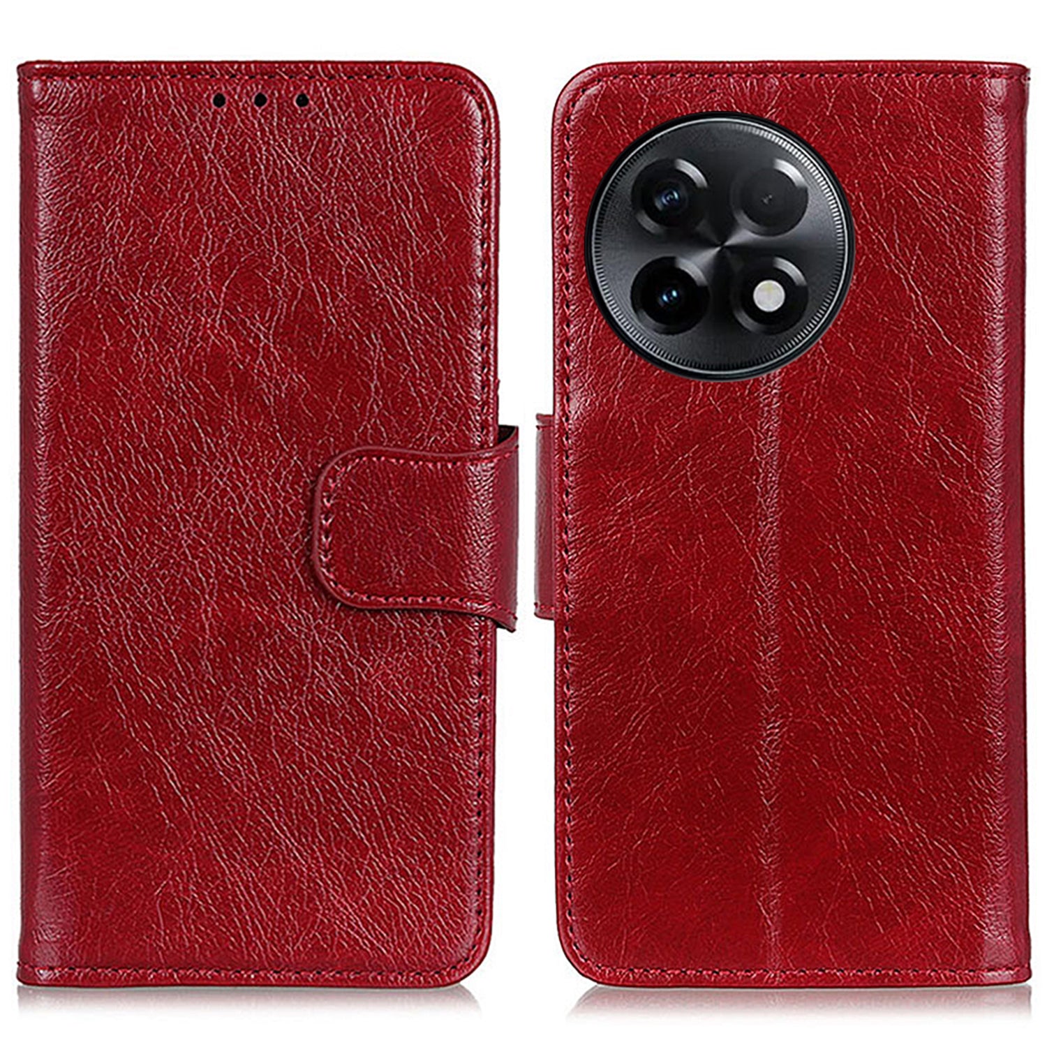 Shockproof Phone Case For OnePlus Ace 2 5G / 11R 5G Split Leather Nappa Texture Flip Wallet Stand Cell Phone Cover - Red