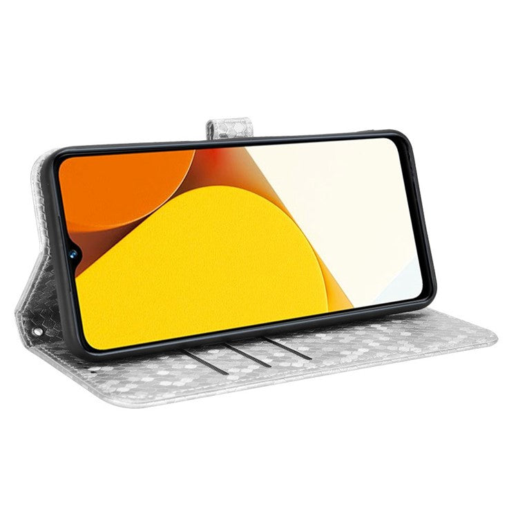 Shockproof Phone Case For vivo Y35 4G (2022), Flip Wallet Stand Dot Pattern Imprinted PU Leather Magnetic Clasp Phone Cover with Strap - Silver