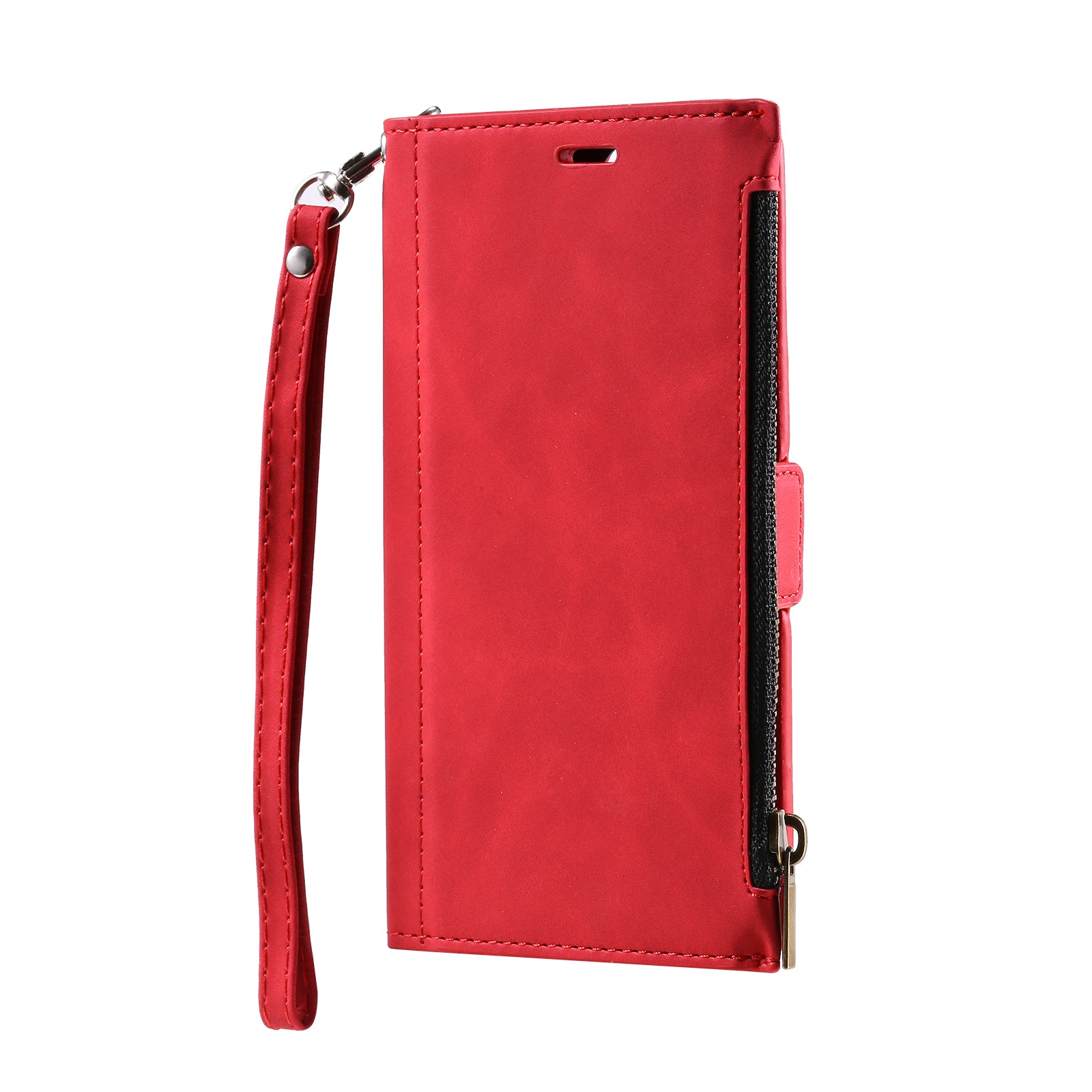 Shockproof PU Leather Zipper Pocket Flip Kickstand Wallet Case with Wrist Strap for Samsung Galaxy S20 FE 2022/S20 FE 4G/S20 FE 5G/S20 Lite - Red