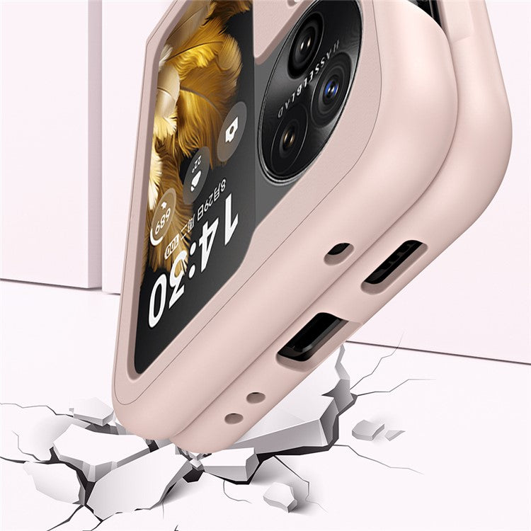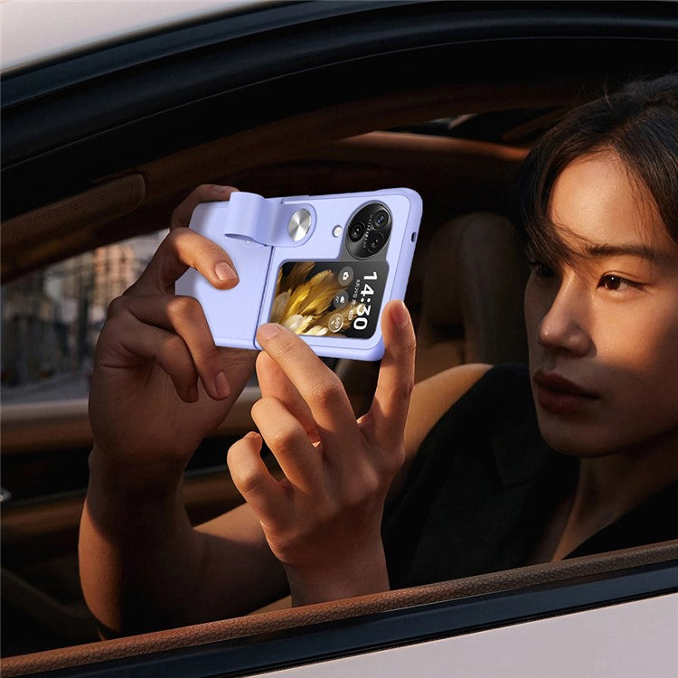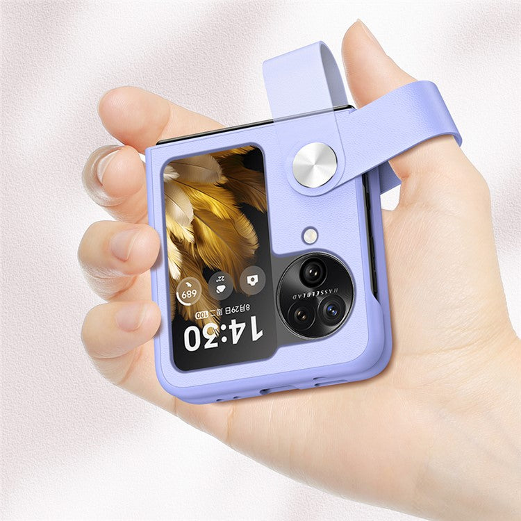 Shockproof PU+PC Slim Case for Oppo Find N3 Flip 5G Finger Strap Kickstand Phone Cover - Pink