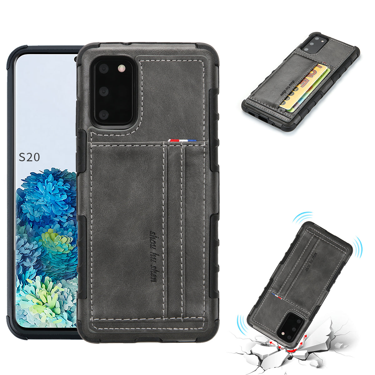 SHOUHUSHEN Cover PU Leather+PC Hard Case with Card Slots for Samsung Galaxy S20 4G/S20 5G - Grey