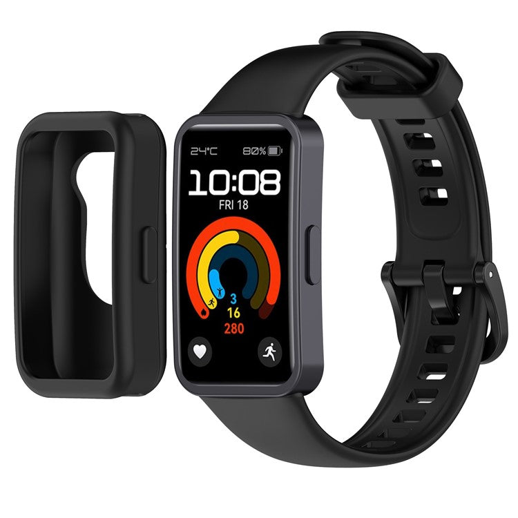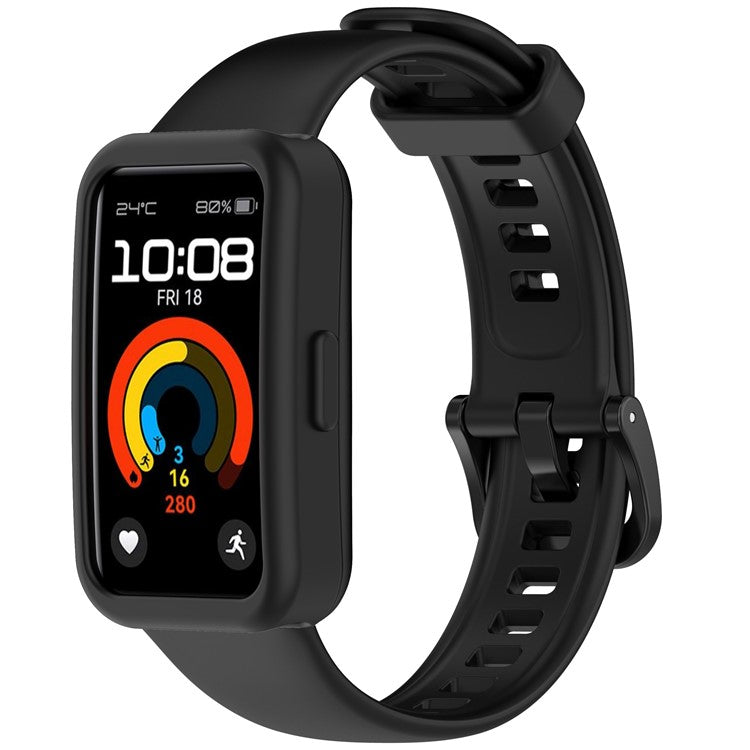 Silicone Band for Huawei Band 10 NFC / 10 / 9 NFC / 9 / 8 NFC / 8 Adjustable Strap with Watch Frame - Black