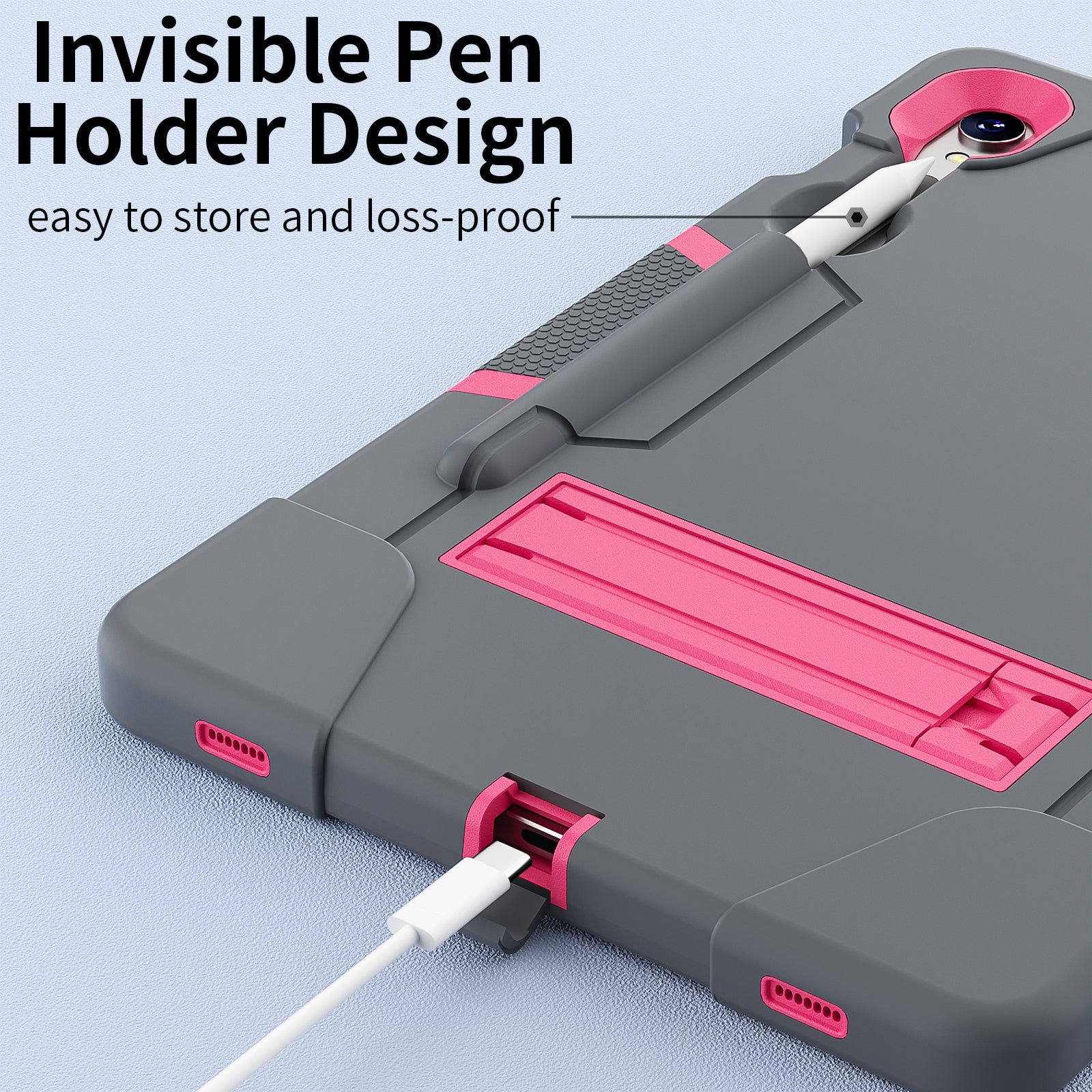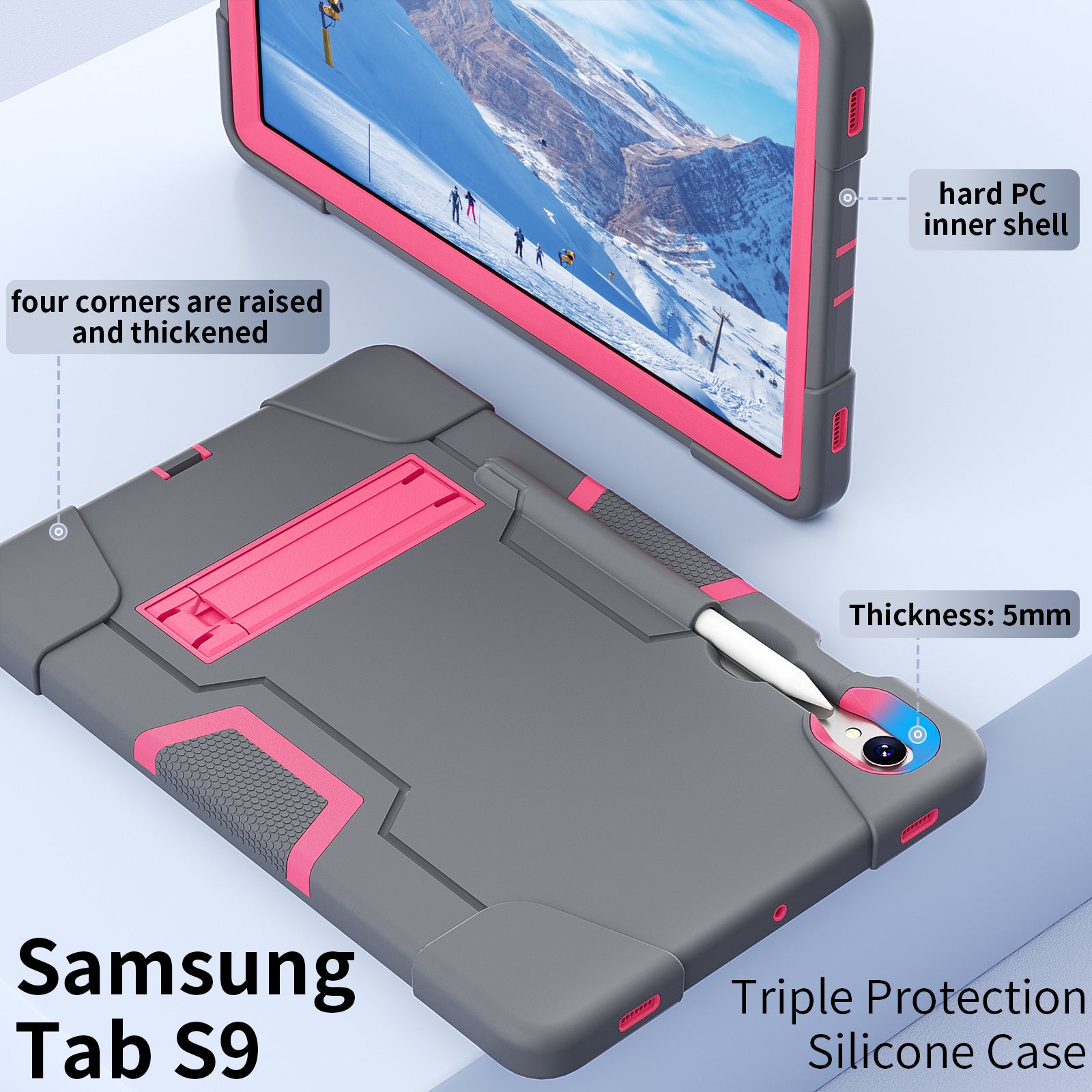 Silicone + PC Tablet Case for Samsung Galaxy Tab S9 SM-X710  /  S9 FE SM-X510 Robot Style Dual Color Kickstand Cover - Grey  /  Rose Red