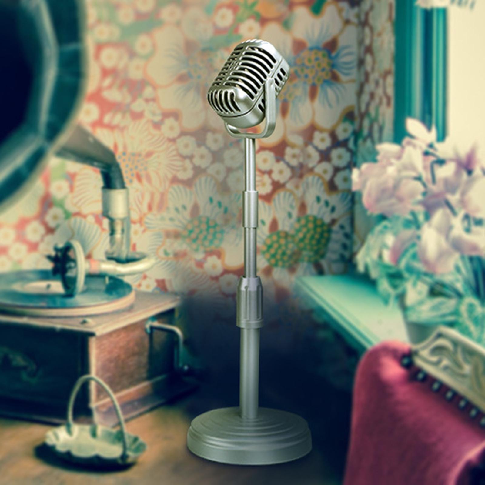 Simulation Classic Retro Vintage Style Mic Prop Photography with Stand Silver