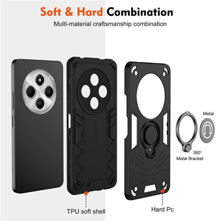 Slide Camshield Kickstand Case for Xiaomi Redmi 14C 4G / 14R 5G / Poco C75 4G PC+TPU Phone Cover - Black