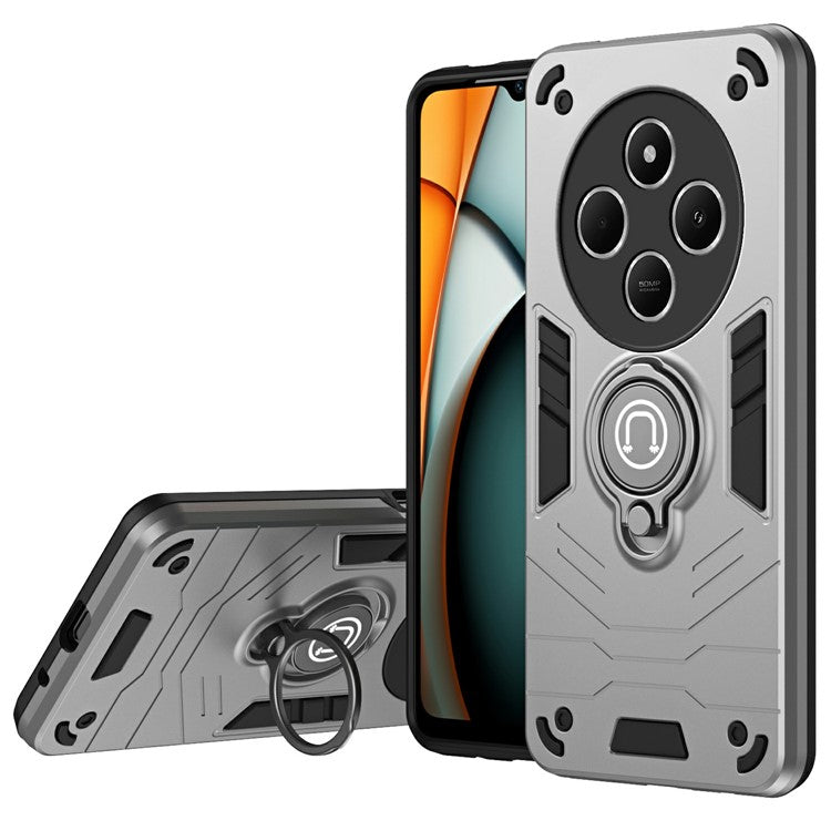 Slide Camshield Kickstand Case for Xiaomi Redmi 14C 4G / 14R 5G / Poco C75 4G PC+TPU Phone Cover - Grey