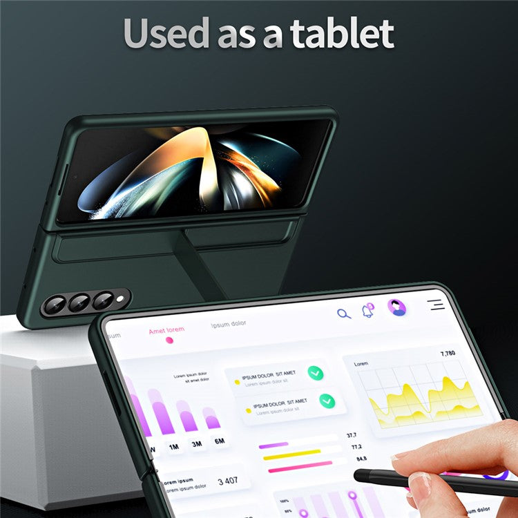 Slim Phone Case for Samsung Galaxy Z Fold4 5G Shockproof Had PC Kickstand Case with Pencil Holder - Purple