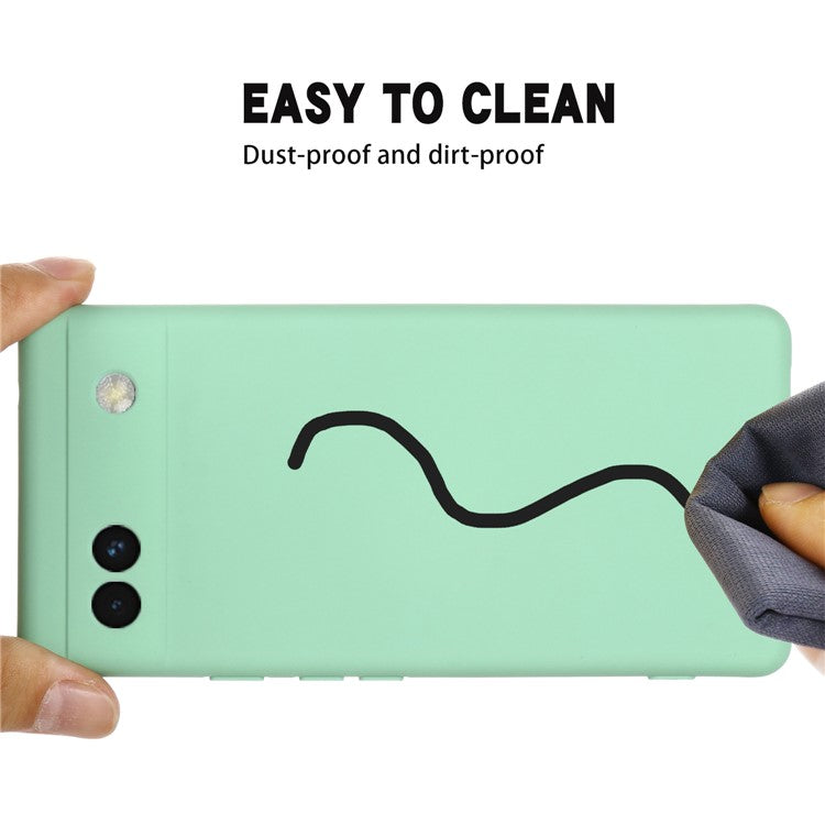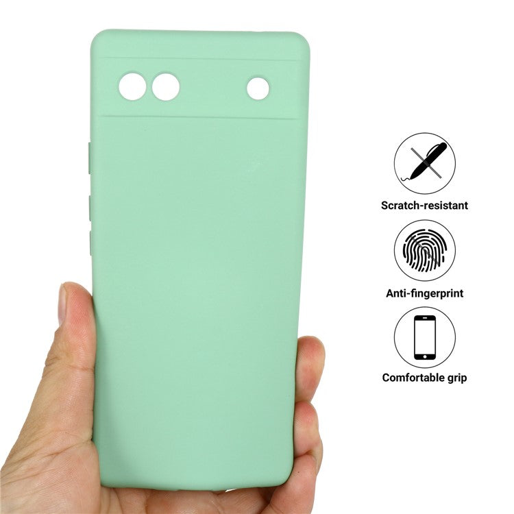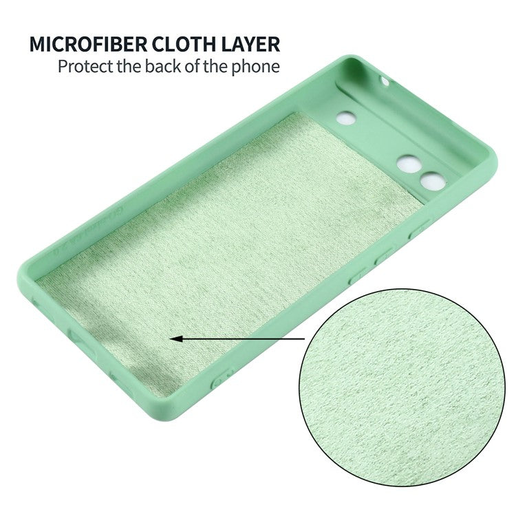 Soft Touch Liquid Silicone Microfiber Lining Anti-Shock Flexible Phone Case with Strap for Google Pixel 6a - Green