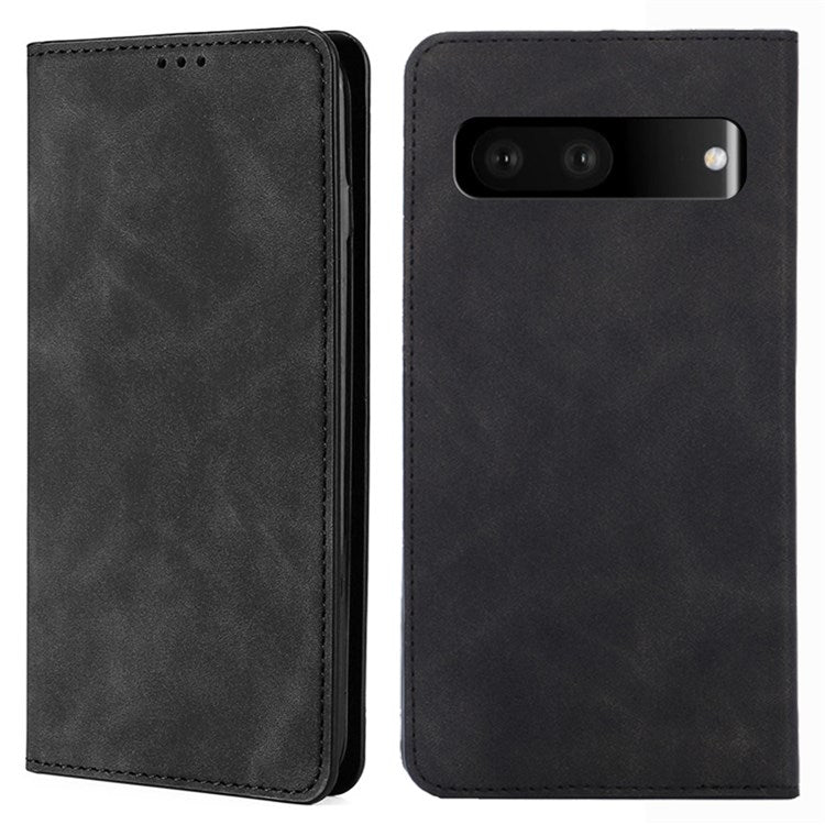 Soft Touch Magnetic Closure Phone Case for Google Pixel 7 5G Shockproof Folio Flip Cover Anti-Scratch PU Leather Protective Case with Stand - Black