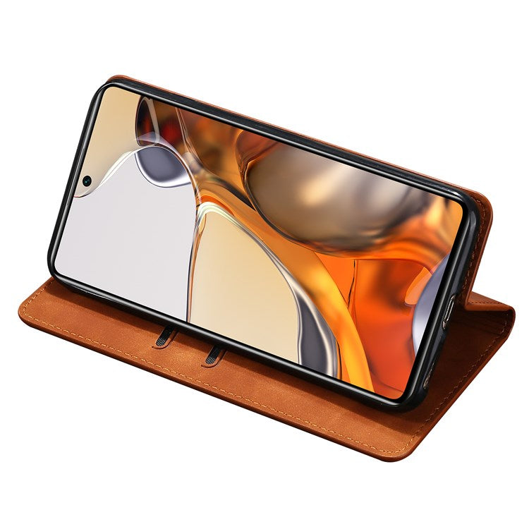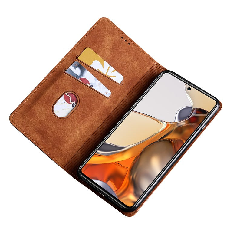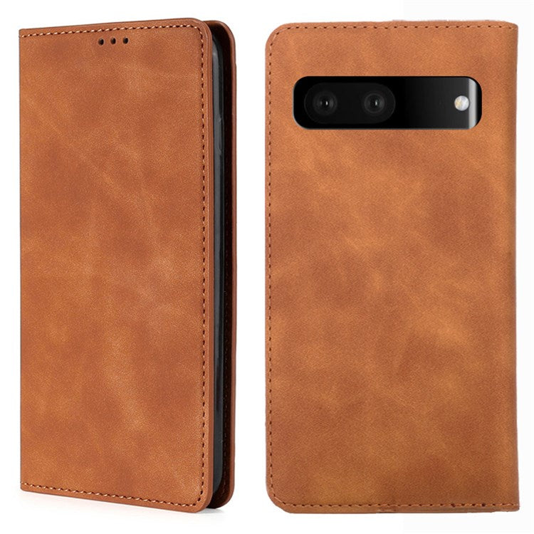 Soft Touch Magnetic Closure Phone Case for Google Pixel 7 5G Shockproof Folio Flip Cover Anti-Scratch PU Leather Protective Case with Stand - Light Brown