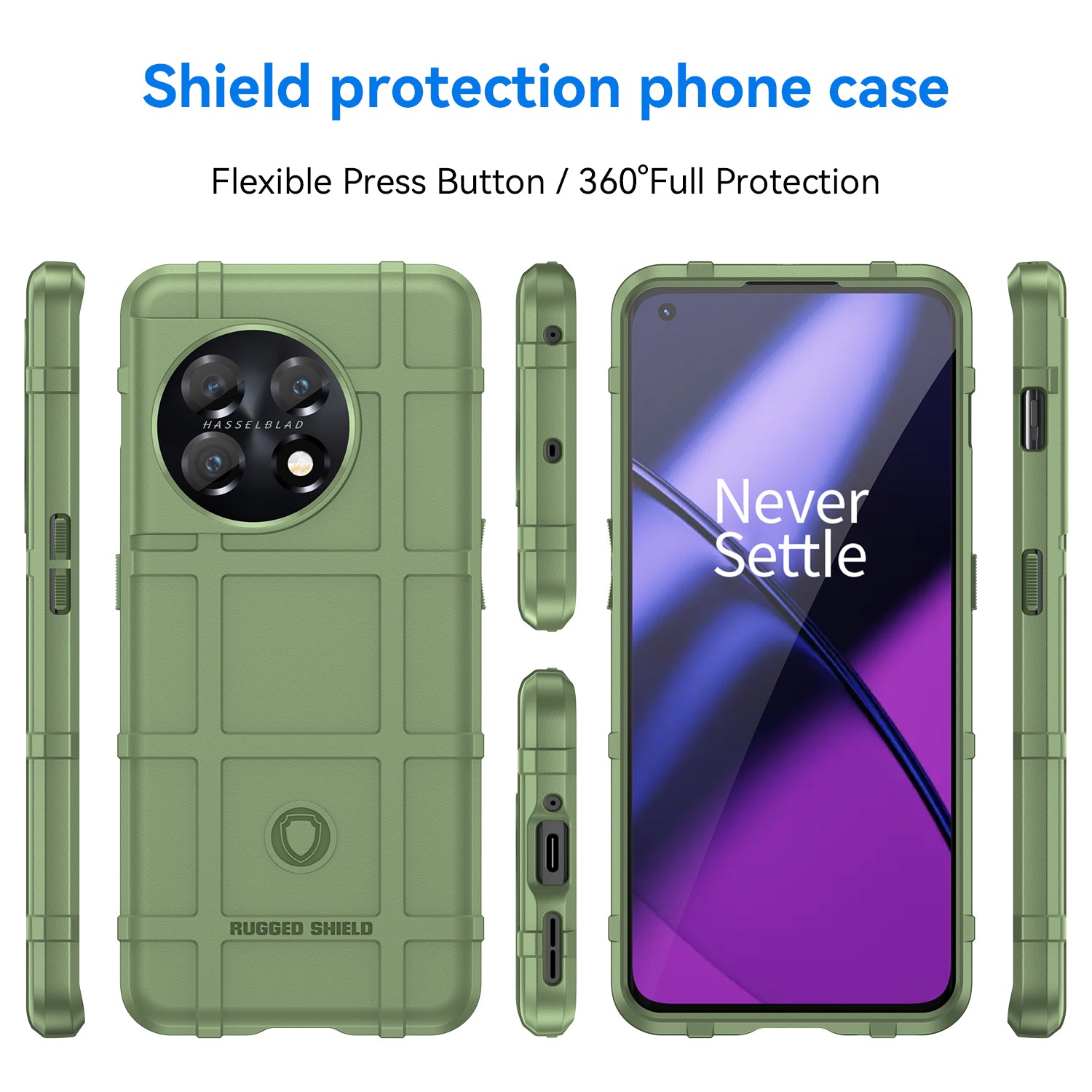 Soft TPU Case for OnePlus 11 5G, Rugged Square Grid Texture Drop-proof Phone Cover - Green