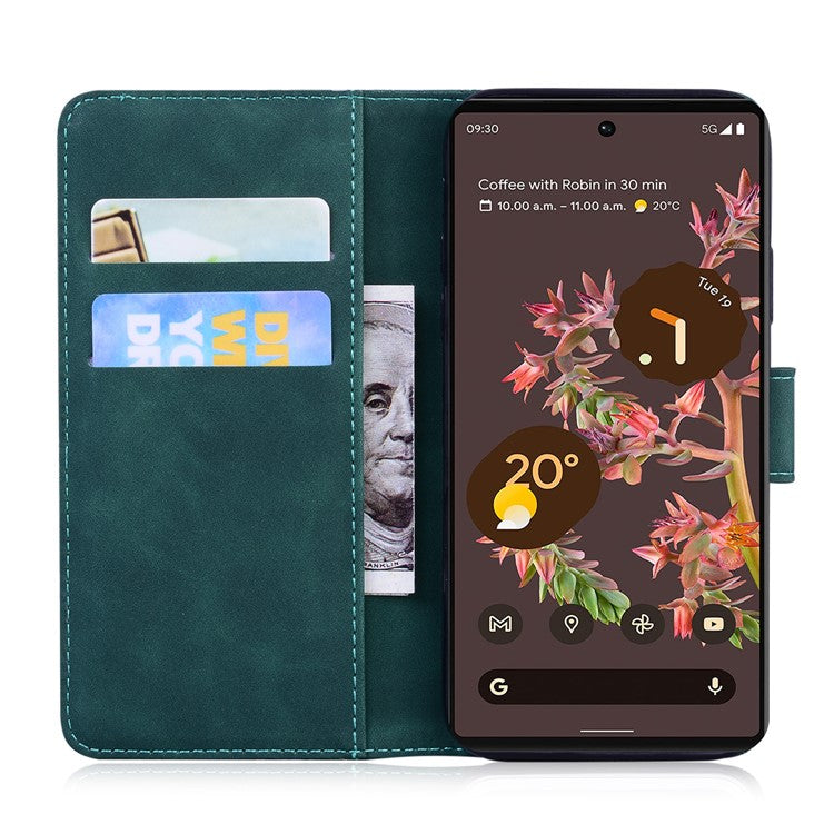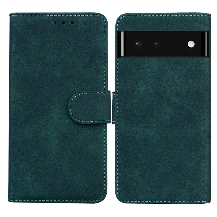 Solid Color Phone Case Stand Wallet Premium PU Leather Dual-sided Magnetic Closure Cover Shell for Google Pixel 6 - Green