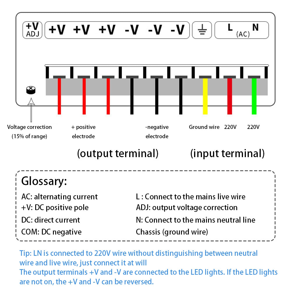 - The power supply driver is suitable for most devices, such as illuminated module signboards, LED strip lights, LED displays, etc