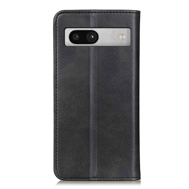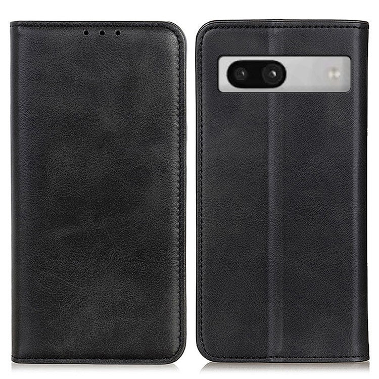 Split Leather Cell Phone Case for Google Pixel 7a , Wallet Stand Shockproof Phone Cover - Black