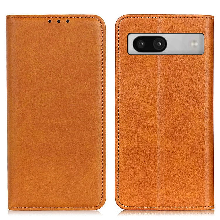 Split Leather Cell Phone Case for Google Pixel 7a , Wallet Stand Shockproof Phone Cover - Brown