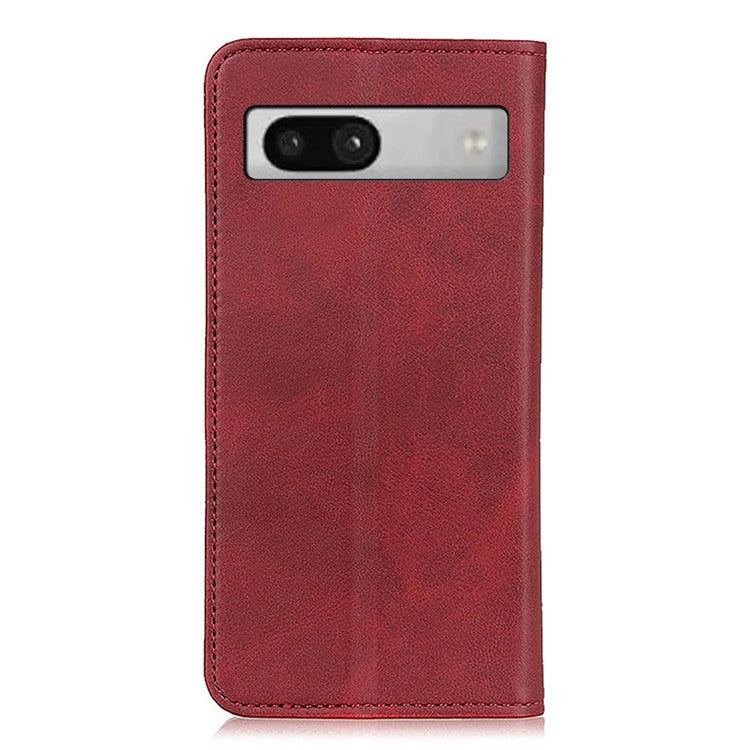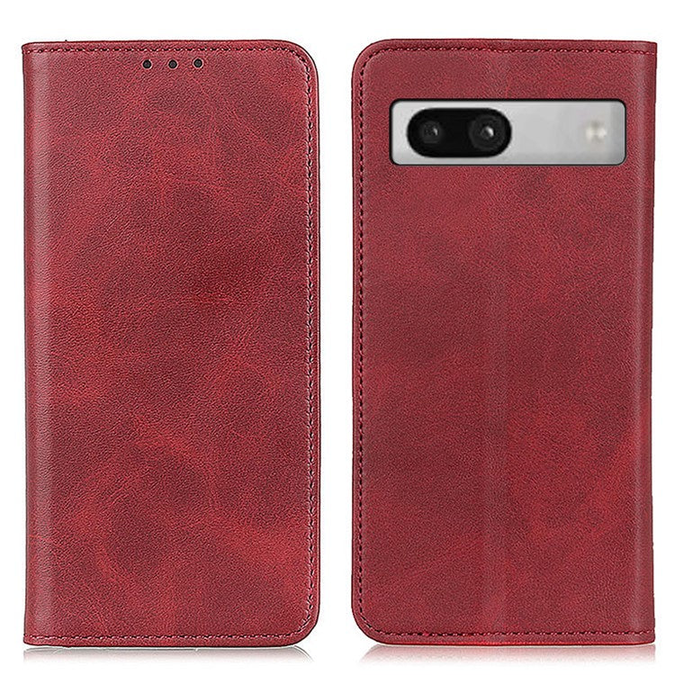 Split Leather Cell Phone Case for Google Pixel 7a , Wallet Stand Shockproof Phone Cover - Red